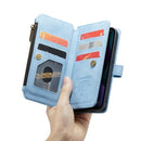 - Apple iPhone 13 Pro Suede Zipper Boektype hoesje - Licht Blauw